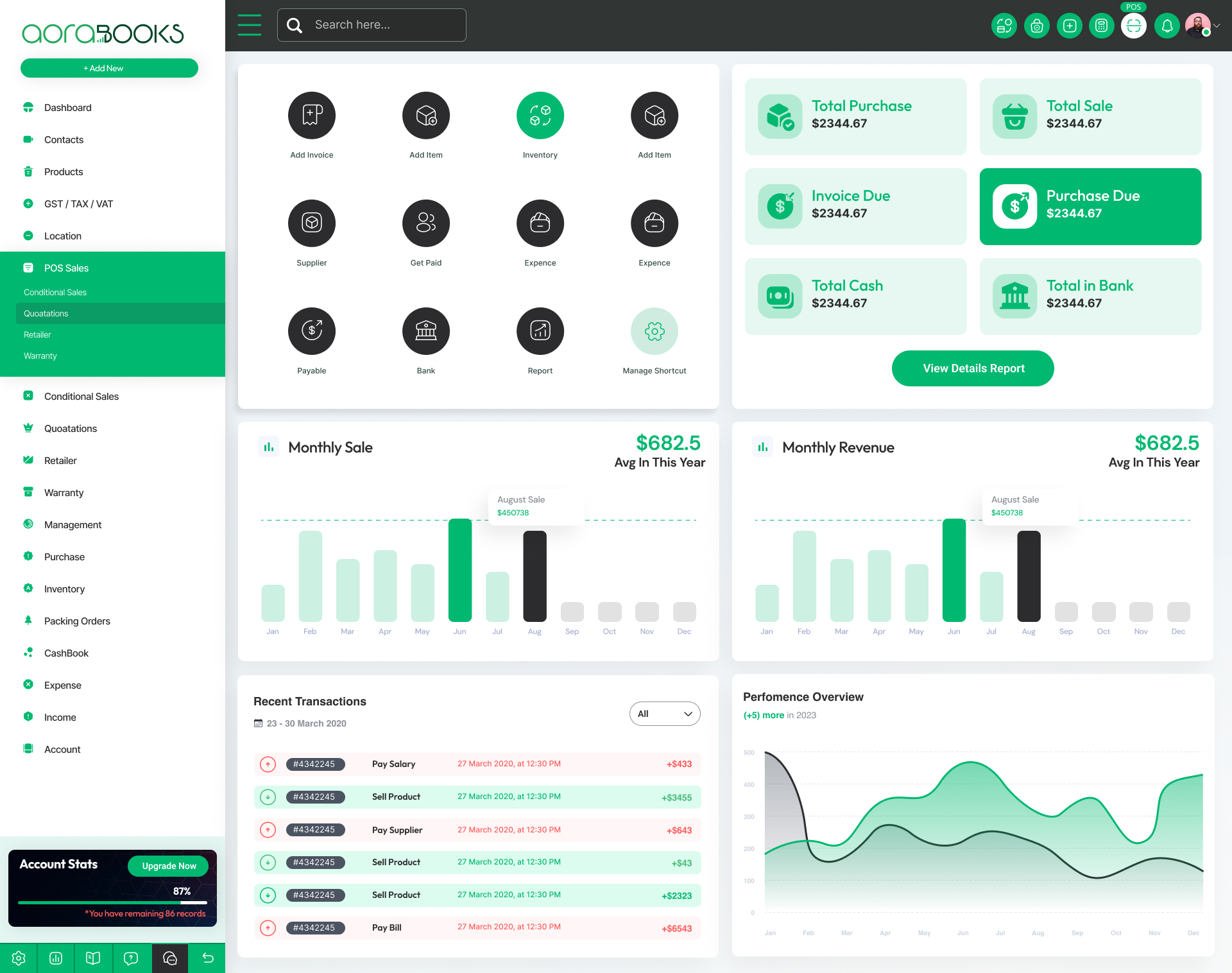 Aorabooks offers a complete financial management accounting system that automatically updates financial records, removing the need for manual reconciliation.