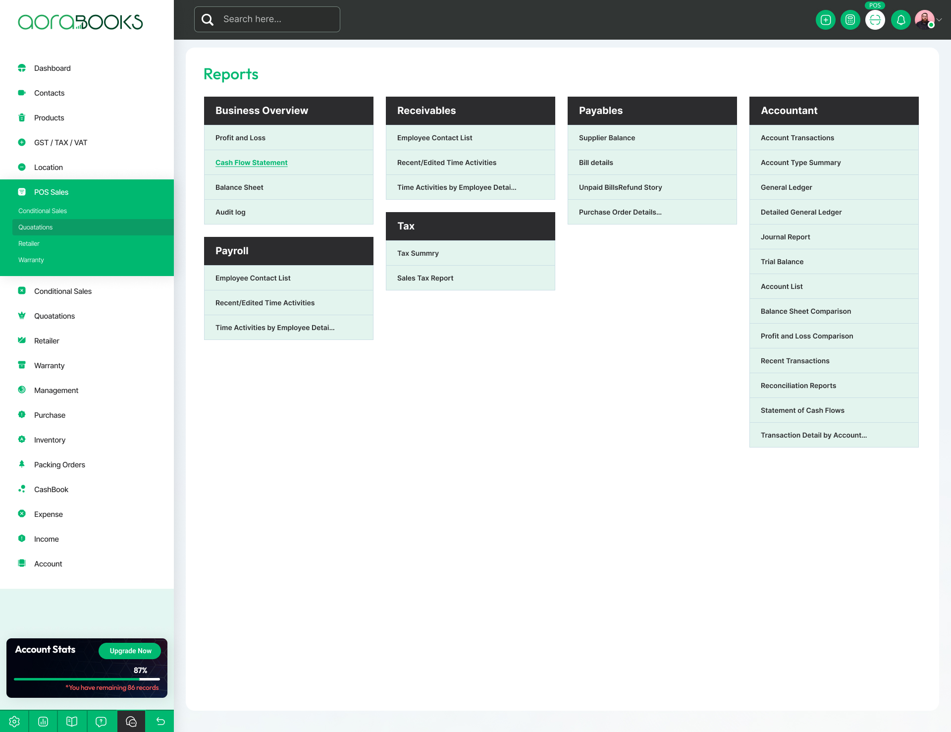Tree View reports can compare your sales order growth by salesman and branch-wise.
